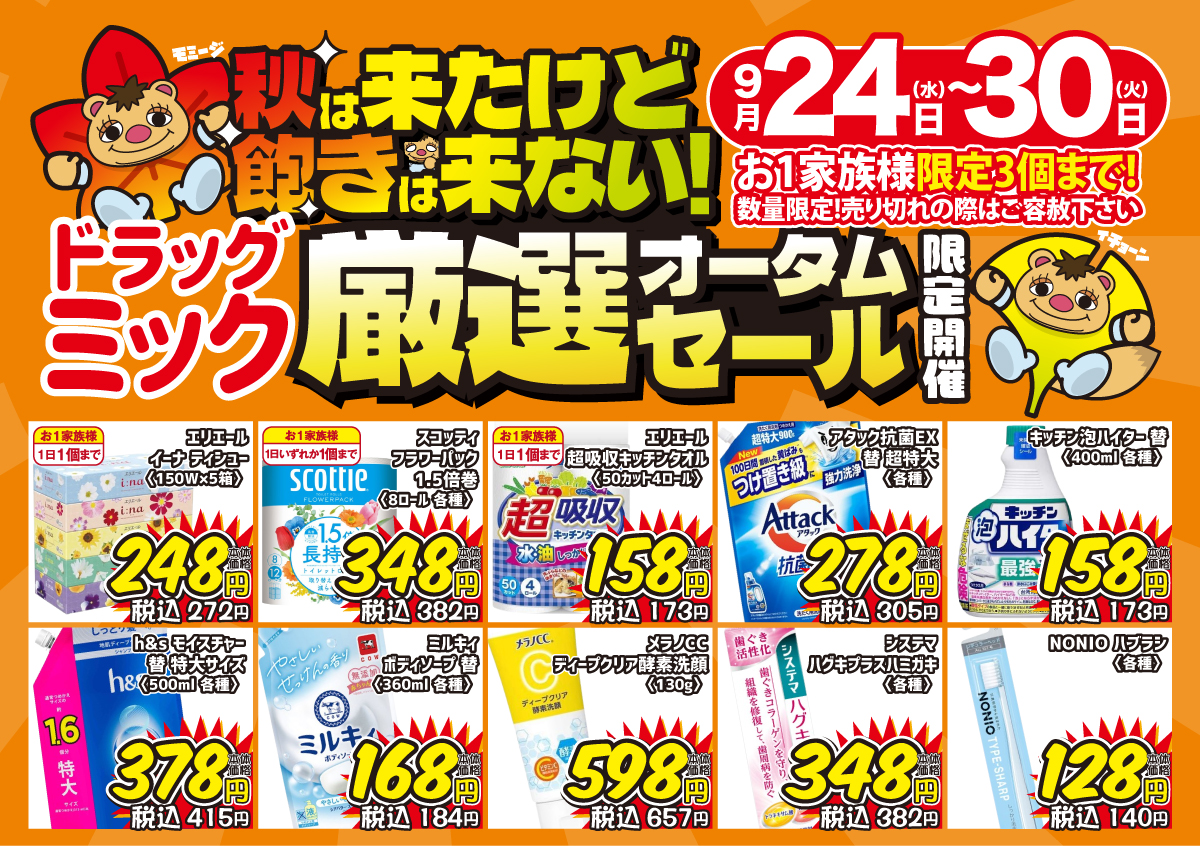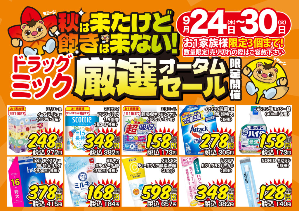 チラシ2025.09.24 2025.10.01 mik 9/24〜9/30「全店開催!期間限定」ドラッグミックチラシ ポスト シェア はてブ 送る Pocket \ 9/24〜9/30「全店開催!期間限定」ドラッグミックチラシ / (チラシ画像をクリックで拡大してご覧いただけます) 店舗一覧ページへ この記事が気に入ったら いいねしよう! 最新記事をお届けします。 ポスト シェア はてブ 送る Pocket feedly コメントを残す コメントをキャンセルメールアドレスが公開されることはありません。 ※ が付いている欄は必須項目ですコメント ※ 名前 ※ メール ※ サイト 次回のコメントで使用するためブラウザーに自分の名前、メールアドレス、サイトを保存する。 Δ