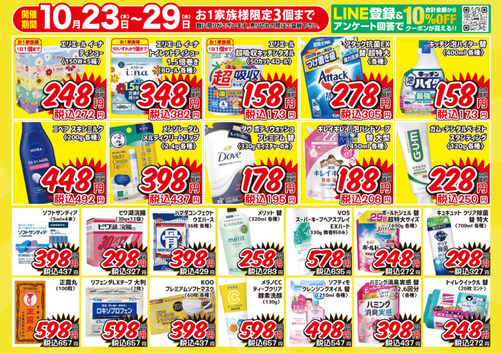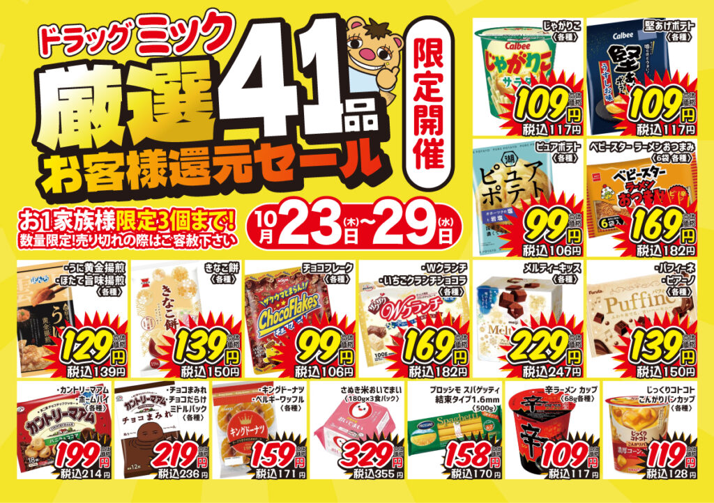 10/23〜10/29「全店開催!期間限定!」ドラッグミックチラシ