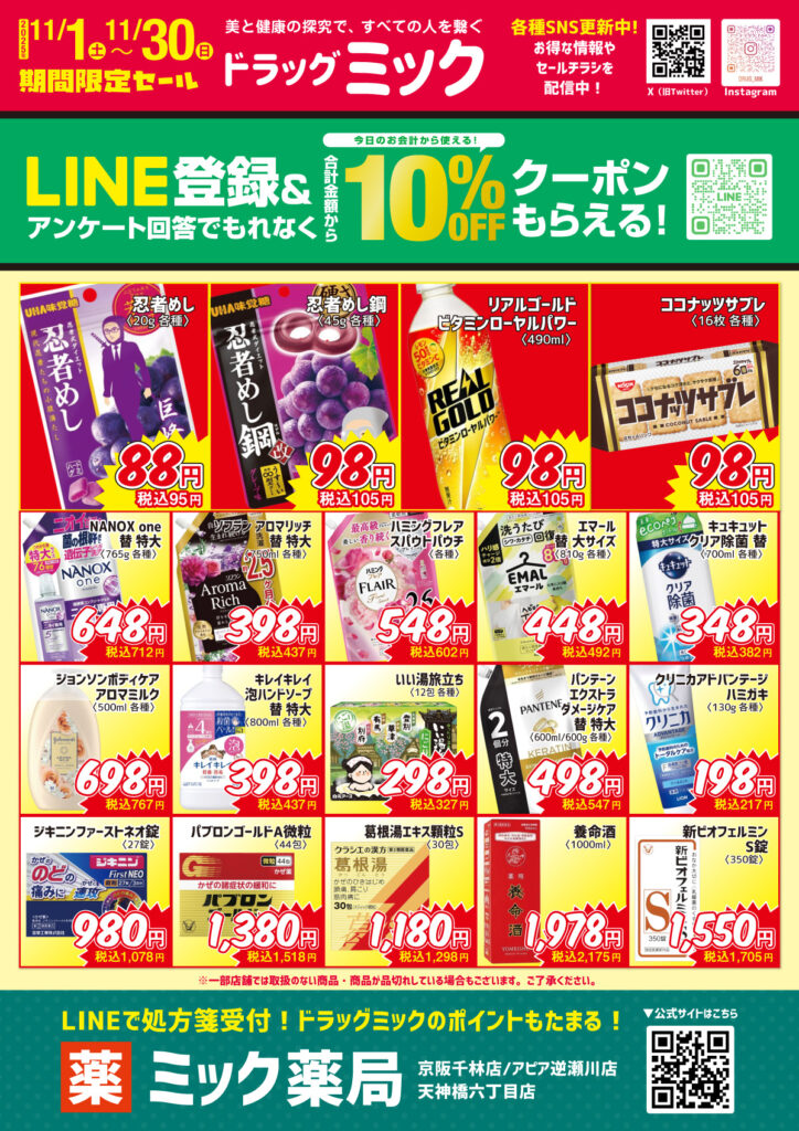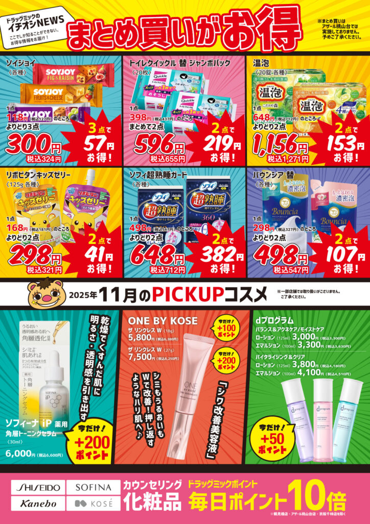 チラシ2025.11.01 mik 【11月のお買い得品】ドラッグミック大特価チラシ ポスト シェア はてブ 送る Pocket \ 毎月「超」お得なチラシ情報をお届けします! / ドラッグミックで実施している月別チラシです! (チラシ画像をクリックで拡大してご覧いただけます) 2025年11月度チラシ 店舗一覧ページへ この記事が気に入ったら いいねしよう! 最新記事をお届けします。 ポスト シェア はてブ 送る Pocket feedly コメントを残す コメントをキャンセルメールアドレスが公開されることはありません。 ※ が付いている欄は必須項目ですコメント ※ 名前 ※ メール ※ サイト 次回のコメントで使用するためブラウザーに自分の名前、メールアドレス、サイトを保存する。 Δ