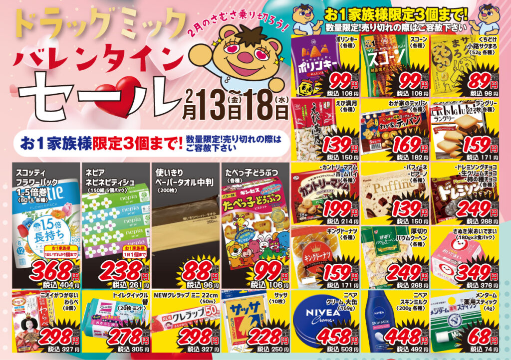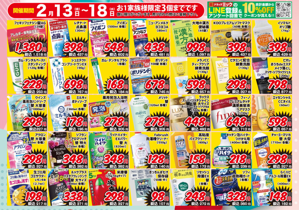 チラシ2026.02.13 mik 2/13〜2/18「期間限定!」ドラッグミックチラシ ポスト シェア はてブ 送る Pocket \ 2/13〜2/18「期間限定」ドラッグミックチラシ / 店舗一覧ページへ この記事が気に入ったら いいねしよう! 最新記事をお届けします。 ポスト シェア はてブ 送る Pocket feedly コメントを残す コメントをキャンセルメールアドレスが公開されることはありません。 ※ が付いている欄は必須項目ですコメント ※ 名前 ※ メール ※ サイト 次回のコメントで使用するためブラウザーに自分の名前、メールアドレス、サイトを保存する。 Δ